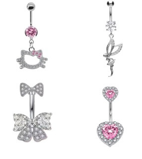 پیرسینگ ناف قلبی صورتی باربی